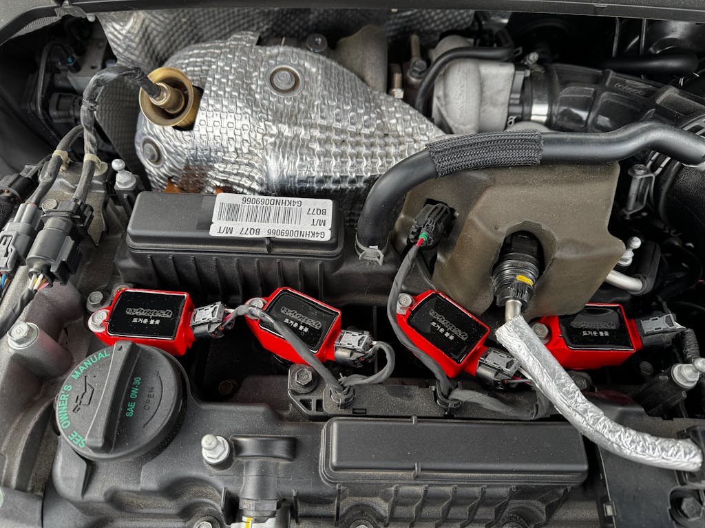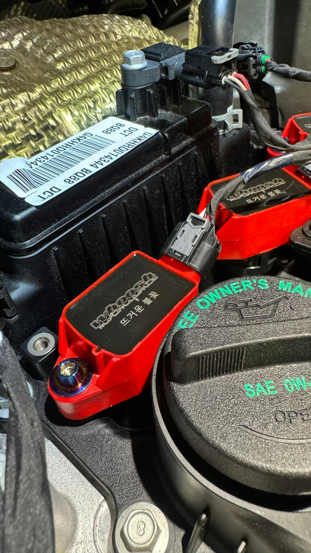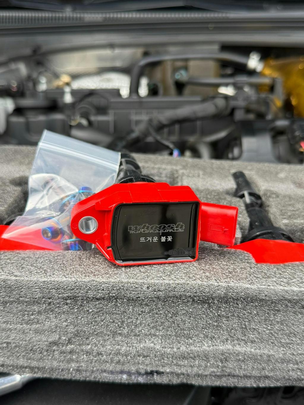 The whoosh motorsports 뜨거운 불꽃 (HOT FLAME) Performance Coil Packs are designed as direct performance replacements for the OEM coils on any Hyundai N (Elantra, Kona, Veloster)