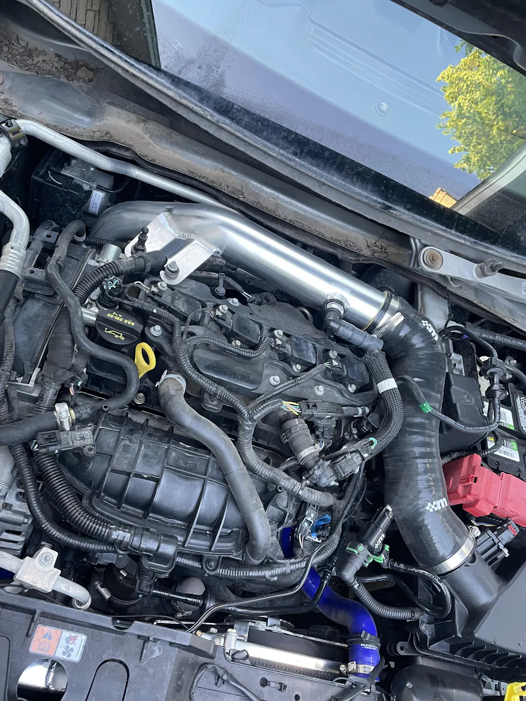 The pipe has a laser cut, tig welded bracket allowing you to utilize the standard intake pipe mounting point, it also also has CNC- machined connection for the factory re-circulation hose (breather)